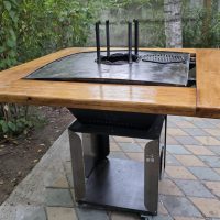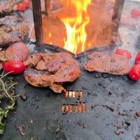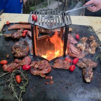 - Gătit mai rapid și cu consum mic de lemne: folosind o plită (plancha) de 4 mm sau 5 mm grosime, efectul de bombare / ridicare a centrului este mai accentuat și atunci grăsimea se scurge mai repede, stă in contact mult mai puțin cu mancarea, nu se scurge in foc si nu arde generand compuși nesănătoși și nici fum.