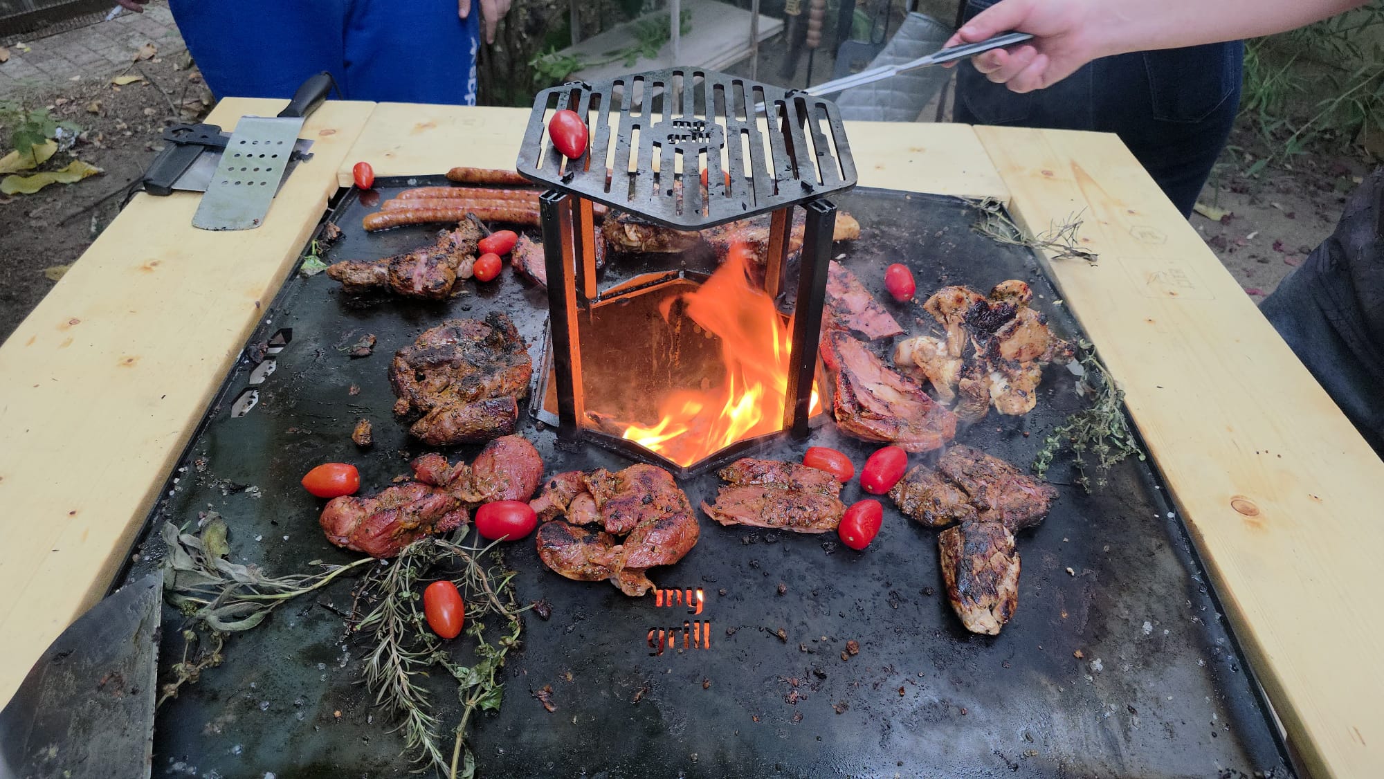 - Vrei o flacără gigantică? Grătarul nostru pătrat My Grill Lynx 100 se transformă în câteva secunde într-o vatră de foc fără fum (true smokeless fire pit) gigantică – 125 centimetri diagonală! Chiar din secunda când ai terminat de gătit. Cum este posibil? Pentru că plita My Grill Lynx 100 la grosimea de 4 mm are doar 34 de kilograme. Pentru că au fost gândite să poată fi ridicate și îndepărtate ușor de 2 oameni, în siguranță, fără să se ardă.