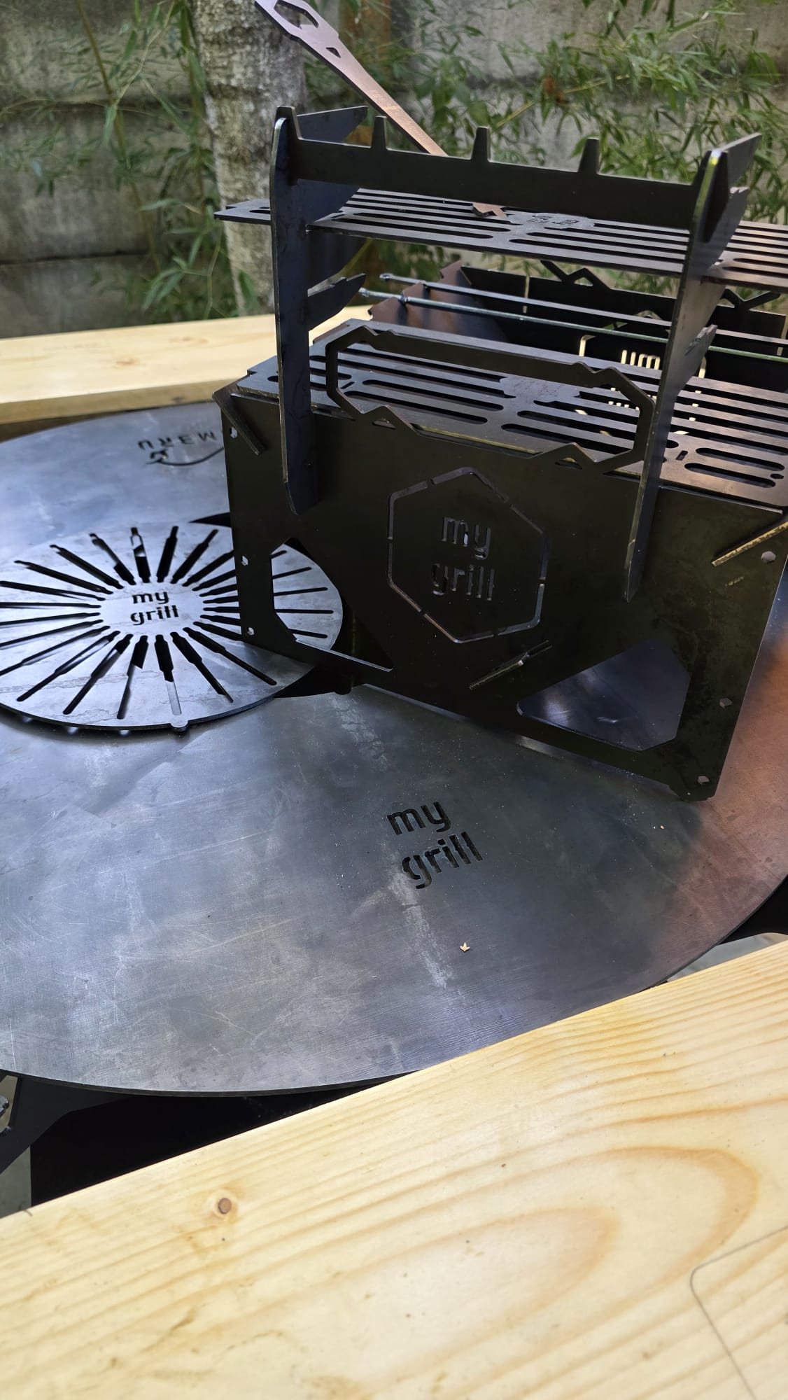 4‑în‑1: plită, grătar, wok sau ceaun, fire pit (cu plita demontată), combustibili lemn/cărbune sau pentru fire pit poți adauga peleți sau lemn tocat scăpand de resturile din curte (umiditate (12%).
