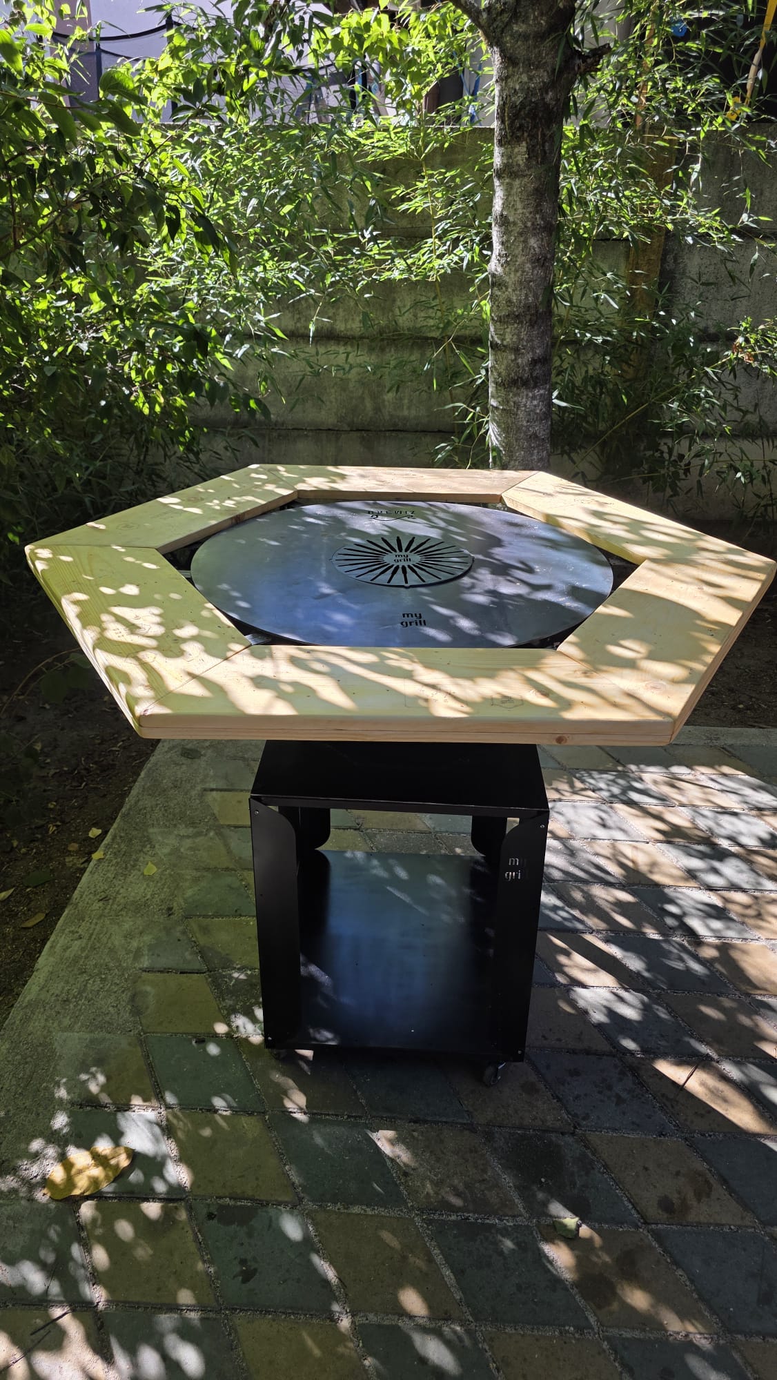 Grătar cu plită hexagonală sau octogonală și vatră de foc fara fum (smokeless) – 4 în 1