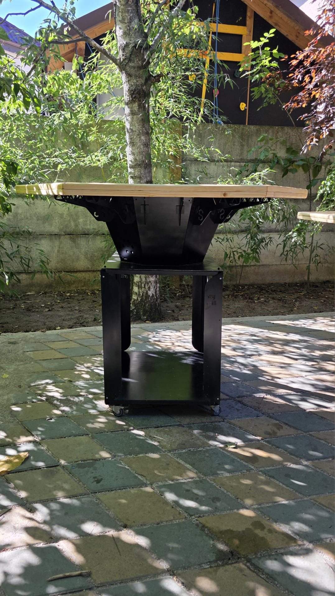1. Așază grătarul pe o suprafață stabilă și rezistentă la căldură – preferabil în aer liber, pe pavaj sau sol tare.